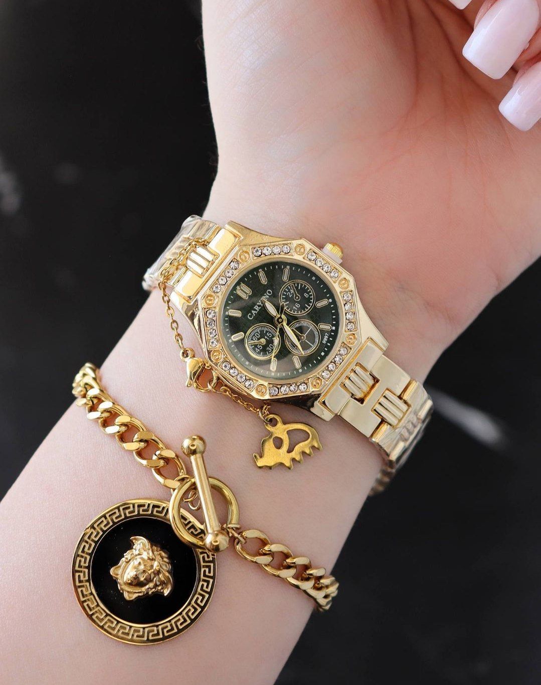 ست ساعت و دستبند زنانه برند cryno | مدل ورساچ فوق العاده شیک