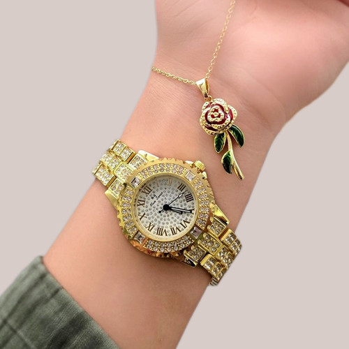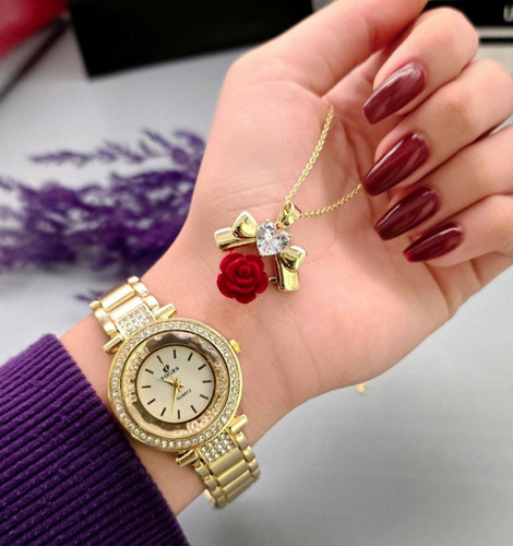 ساعت مچی فول نگین زنانه به همراه گردنبند