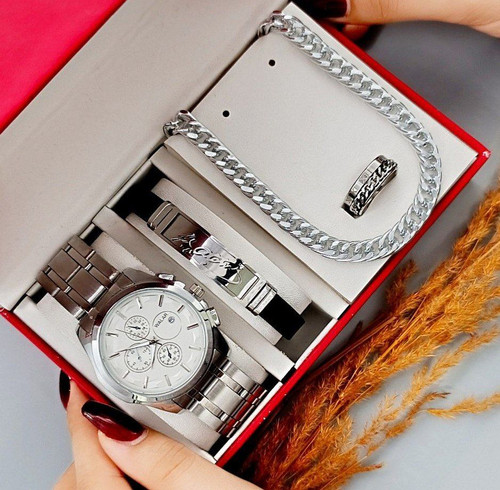 ست ساعت مچی مردانه شیک ( به همراه دستبند و انگشتر)