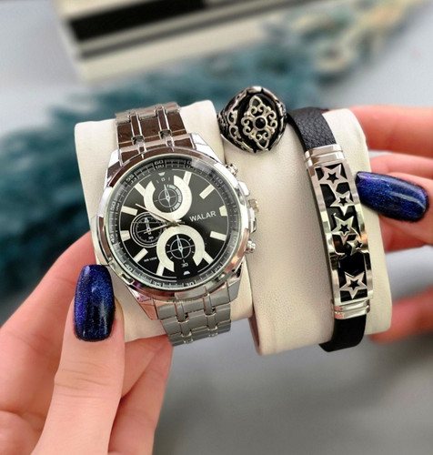 ست ساعت مچی مردانه شیک برند walar ( به همراه دستبند و انگشتر )