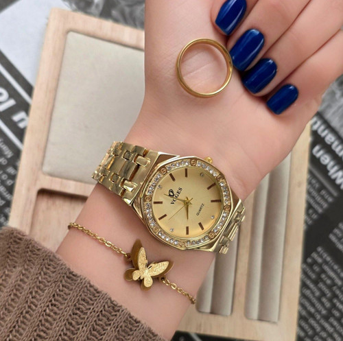 ست ساعت مچی و دستبند زنانه باکیفیت الینا | با انگشتر طلاروس